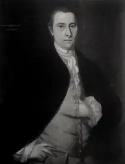 Ellison returned home from the continent in the summer of 1744 to recover at Bath from painful cramps and swellings in his limbs that had begun while on campaign; a hypochondriac, he attributed these difficulties to his weak constitution.[2][11][9] In response to this and his difficulties in obtaining promotion, Ellison attempted to retire from the army but was not allowed to, his previous dealings with the king having given George such a positive opinion of Ellison that he refused to let him go.[2][12][1] Instead Ellison chose to sell his regimental commissions in the 6th and 23rd, which he did for £3,500 to Sir John Whitefoord on 19 March.[12][13][14]