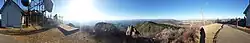 To the west, the Pacific Ocean, the Coronado Islands of Mexico, the coastline of San Diego County, Viejas Mountain, and El Cajon Mountain can be seen.
