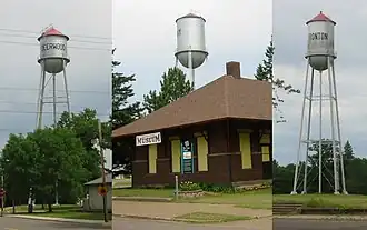 ![]() The water tanks in Deerwood, Crosby, and Ironton respectively, in 2006 | |