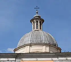 There are two paintings on the side walls of the vestibule by Daniel Seyter, the Martyrdom of St Catherine of Alexandria and the Martyrdom of St Lawrence. The first versions of these were painted by the Viennese artist between 1685 and 1686 using an unusual technique, oil on plaster. The paintings rapidly deteriorated and the best preserved fragments were sent to Massa by the cardinal to his nephew, Duke Carlo II Cybo-Malaspina in 1697. They were substituted with traditional oil paintings on canvas by the same Seiter between 1698 and 1700. The compositions remained similar.[5]