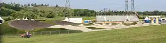 Cycling competitions at the 2015 Pan American Games in Toronto were held July 10 to 25, 2015 at four different venues.[1] The BMX competitions took place at the Centennial Park Pan Am BMX Centre in Toronto, the mountain biking competitions happened at the Hardwood Ski and Bike (Hardwood Mountain Bike Park) in Oro-Medonte, due to naming rights the venue was known as the latter for the duration of the games.[2] The road races happened in the streets of Downtown Toronto with the start and finish being adjacent to the Ontario Place West Channel. Finally the track cycling events occurred at the Milton Velodrome in Milton. The road cycling time trials happened in the streets surrounding the velodrome (Milton Time Trial Course).[3]