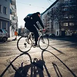Cycling in Berlin is a significant form of transport in the German capital where around 500,000 daily bike riders accounted for 13% of total traffic in 2010.[1] The city has a highly developed bicycling infrastructure and it is estimated that Berlin has 710 bicycles per 1000 residents.[2] Among cities with more than one million inhabitants Berlin is a metropolis with one of the highest rates of bicycle commuting in the world.