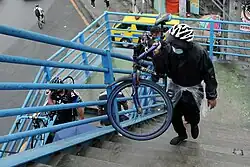 Several pedestrian footbridges and underpasses, particularly in Quezon City, have also been outfitted with bicycle ramps to allow cyclists to bring their bicycles on them.[61]