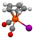 Cyclopentadienyliron dicarbonyl iodide is an organoiron compound with the formula (C5H5)Fe(CO)2I. It is a dark brown solid that is soluble in common organic solvents. (C5H5)Fe(CO)2I, or FpI as it is often known, is an intermediate for the preparation of other organoiron compounds such as in ferraboranes.