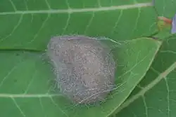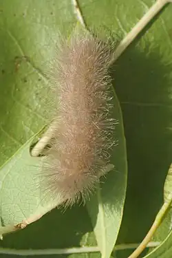 Eggs are laid in clutches of 50–100. Larvae are reported to feed in aggregations of five to seven, at least in the early instars.[1] Caterpillars are covered all over in soft grey to whitish hairs. Larvae feed at night.