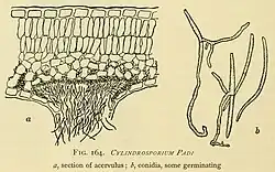 - ^ Higgins, Bascombe Britt (1914). "Contribution to the Life History and Physiology of Cylindrosporium on Stone Fruits". American Journal of Botany. 1 (4): 145–173. doi:10.2307/2435264. ISSN 0002-9122. JSTOR 2435264.