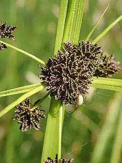 Cyperus difformis is a species of sedge known by several common names, including variable flatsedge,[2] smallflower umbrella-sedge and rice sedge.[3] This plant is native to southern Europe, most of Africa and Asia, and Australia, and it is naturalized in other areas of the world, including large parts of the Americas.[1][4][5][6][7][8][9][10][11][12]