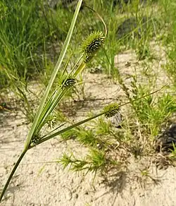 Cyperus retrorsus, commonly called pine barren flatsedge,[1] is a species of flowering plant in the sedge family (Cyperaceae). It is found primarily in the Southeastern United States, with a range extending north to Martha's Vineyard, Massachusetts[2][3] and south to Tamaulipas, Mexico.[4] Its natural habitat corresponds to dry sandy soils, open woodlands and thickets.[4]