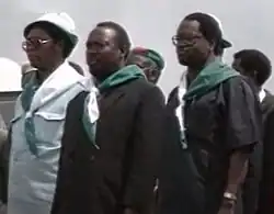 While abroad, Ntaryamira maintained an interest in Burundian politics and in 1976 cofounded a student movement, known as the Movement of Progressive Barundi Students (Mouvement des Etudiants Progressistes Barundi).[2][3] He served as head of its information department.[1] In August 1979, some of the student movement members founded the Burundi Workers' Party (Umugambwe wa'Bakozi Uburundi, UBU), a revolutionary socialist political party. By 1981 he sat on its central committee as its national secretary responsible for economic and social questions.[6] He returned to Burundi in March 1983 and was hired as an advisor in the Burundian General Directorate of Agricultural Planning.[1] He also established a hen-breeding business in Mubimbi.[7] The following January he took charge of the Compagnie de Gérance du Coton's northern cotton region. In May 1985 he was arrested and held at Mpimba prison for working with a subversive political movement—UBU. Incarcerated for a year, he was reportedly freed at the request of the wife of President Jean-Baptiste Bagaza, a childhood friend of his.[1]