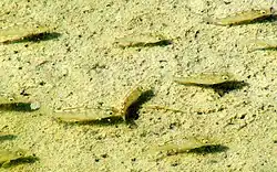 They stay in shallow water, particularly where the bottom is vegetated. The fish pictured in the taxonomy box were in extremely salty water along a levee running among salt evaporation ponds at Las Coloradas, Yucatán.[4]