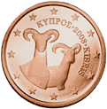 - 1 cent, 2 cent and 5 cent: The mouflon, the most characteristic species of fauna in Cyprus, representing the island's nature and wildlife.
