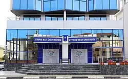 Cyprus West University (CWU; Turkish: Kıbrıs Batı Üniversitesi, commonly referred to as KIBÜ) is a non-profit university located in Famagusta, which is part of the illegally occupied land in the Republic of Cyprus was established in 2015.[1] Cyprus West University has five faculties, three schools, and 20 different undergraduate and associate programs are offered in English and Turkish Languages. Cyprus West University is accredited by YÖK,[2] Turkish Republic Higher Education Board and YÖDAK, The Higher Education Planning, Evaluation, Accreditation and coordination Council of the so called Northern Cyprus,[3] and approved by TRNC Ministry of National Education and Culture.