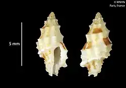 | Shell of Cytharomorula benedicta (specimen at MNHN, Paris) | |