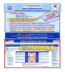 CytoJournal is a peer-reviewed PubMed-indexed open access online scientific journal on cytology that publishes research articles and information related to all aspects of diagnostic cytopathology, including topics such as molecular cytopathology. It is owned and supported by a non-profit organization (Cytopathology Foundation Inc, USA).