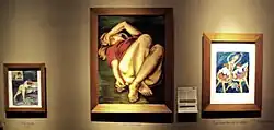 In November 1939 she was invited by the Society of Friends of Art to participate in the "Salon of Professional Artists" in Club Unión, the most prestigious social center in Medellin. She was then 31 years old and a few weeks before the Second World War had begun.[3] The jury decided to award the first prize to Débora. The reward of one hundred pesos was given for the picture Sisters of Charity (also known as Sisters of the Presentation). The choice of this work was made as a way to appease the possible scandal that would be rewarded if one of the two nudes to the watercolor that also presented the artist, named "Cantarina de la Rosa" and "La Amiga". Despite the controversy over the nudes exhibited in the Union Club was immediate. On the one hand, the more traditional artists such as Eladio Vélez. On the other hand, the nudes were judged as scandalous by social sectors whose voices were taken by the local conservative press, as is the case of the newspaper La Defensa, which commented: "... an impudent work that not even a man should exhibit ...". Little by little, the episode acquired political overtones and the liberal press assumed the defense of someone whom it saw as a brave woman. In the midst of the scandal, Débora Arango expressed a concept without antecedents in the national artistic milieu, today much cited about her painting: "art, as a manifestation of culture, has nothing to do with moral codes. Art is not amoral or immoral. Simply its orbit does not intercept any ethical postulate. " Along with the picture Annunciation of Carlos Correa, in the history of Colombian art there are no other works that have caused a controversy similar to that aroused by the nudes of Débora Arango, who at that time was 32 years old. Both eagerness in defense of morality on the part of conservative journalists and even Eladio Vélez himself, contrasts with the harsh reality that was lived in Medellin. On the occasion of the scandal, Débora was called by Father Miguel Giraldo, parish priest of the Church of San José, who advised her to remove the nudes and not continue painting them. It would not be the first or the last time that some religious authorities recalcitrant, tried to censor the painting of someone who had a deep religious sense and communion daily. The same day of the conversation with the priest, she learned sadly that the instigator of the episode had been Eladio Velez. The later nudes produced more scandal than any of the other paintings, in which Débora Arango showed more: violence, marginality, hunger and misery.