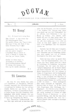 Dúgvan (Faroese pronunciation: [ˈdɪgvan], 'The Dove') was a Faroese monthly newspaper. It was published from January 1894 to 1928[1] primarily in Danish (with some Faroese),[2] with the subtitle afholdsblad for Færøerne 'temperance newsletter for the Faroe Islanders'. A new newspaper with the same name and purpose was also published from 1941 to 1942 in Faroese.[3]