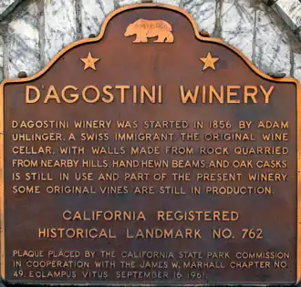 - ^ "D'Agostini Winery". Office of Historic Preservation, California State Parks. Retrieved 2012-03-30.