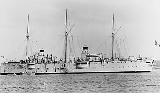 At the start of World War I in August 1914, D'Estrées was initially assigned to the 2nd Light Squadron, which was based in the English Channel, but was quickly transferred to reinforce the Syrian Division for operations against the Ottoman Empire.[22][23] D'Estrées bombarded Ottoman positions along the Syrian coast and helped to enforce a blockade there. She also assisted in the evacuation of some 4,000 Armenians from Antakya on 12 and 13 September, along with several other French cruisers.[24][25] She was moved to the Red Sea in 1916, where she patrolled for the German commerce raider SMS Wolf, which was known to be operating in the Indian Ocean. She remained in the region for the rest of the war, though she saw no further action.[26][27][28] After the war, she was sent to French Indochina, where she spent the remainder of her career. D'Estrées was struck from the naval register in 1922 and broken up.[10]