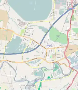 The wooded island is 145 metres in length, and apart from its two points, 30 to 45 metres in width.[1] It is 16.8 miles (27.0 km) from Charing Cross, London.[2][1] Weybridge is the parish[3] and post town. Elmbridge and Surrey County Council are the district and county-level local authorities.[4]