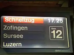 In Switzerland the Schnellzug train category was not entirely dropped from the SBB network until the timetable change on 12 December 2004, when it was replaced by the terms RegioExpress and InterRegio which can be used in all its official languages. One year later the Rhaetian Railway (RhB) followed suit. This process had started a long time before, when the Schnellzug category began to be replaced initially by the InterCity type, some of which have become InterCity-Neigezug (ICN) or Intercity tilting trains of the SBB RABDe 500 class.