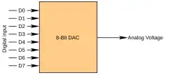 In electronics, a digital-to-analog converter (DAC, D/A, D2A, or D-to-A) is a system that converts a digital signal into an analog signal. An analog-to-digital converter (ADC) performs the reverse function.