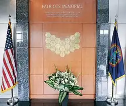 The Defense Intelligence Agency Memorial Wall, commonly known as the Patriots Memorial, is a memorial at DIA Headquarters in Washington, D.C., dedicated to those agency employees who lost their lives in the line of their intelligence work whose deaths are not classified.[1] Each loss is represented by an inscription in a "golden honeycomb". In March 2009, the memorial was redesigned and moved to a new location within DIA headquarters.