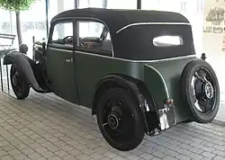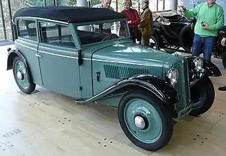 The DKW F2, firstly marketed as "DKW Meisterklasse", is a front wheel drive economy car produced by Auto Union's DKW division from 1932 to 1935 at the company’s Zwickau plant. It was launched at the Berlin Motor Show in April 1932. It shared its 584cc engine and drivetrain with its DKW F1 predecessor, but offered a longer wheelbase and a larger body.[1]
