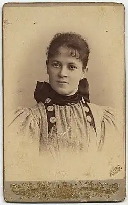 Dace Akmentiņa was born Doroteja Šteinberga on 3 July 1858 in Kreis Bauske to a poor family. She attended school for 3 years. From 1875, Akmentiņa lived in Riga. Here she worked in the theatre and sung in a choir, but also worked as a seamstress. Her first role was as Vana in 1886, in Mikhail Glinka's opera A Life for the Tsar. It was this role which launched her acting career. Her acting career declined after 1914, with her last performance taking place in 1922.[2][3] In her height, she was considered a fashionable woman during the period of Art Nouveau.[4]