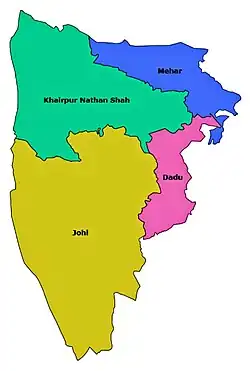 District Dadu has four tehsils, as tabulated below:[9][10]