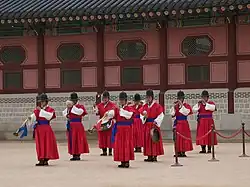 Today, the Ministry of National Defense Traditional Band and Traditional Honor Guards participate in official welcome ceremonies for foreign heads of state and in other state or special events, with the band playing daechwita and the honor guards carrying out ceremonial duties.[1][2]