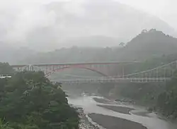 The Dahan River (Chinese: 大漢溪, also spelled Tahan) is a river in northern Taiwan. It originates in Hsinchu County and then flows through Taoyuan City and New Taipei City for 135 km, before it joins Xindian River in Taipei to form the Tamshui River. The upper reaches of the Dahan are also known as Takekan Creek (Chinese: 大嵙崁溪; Pe̍h-ōe-jī: Toā-kho-khàm-khe) or Taigang Creek (Chinese: 泰崗溪). An alternative historical name for the Dahan is the Shihmen River (Chinese: 石門溪).