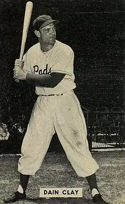 Dain Elmer Clay (July 10, 1919 – August 28, 1994) was an American Major League Baseball outfielder. He played for the Cincinnati Reds of the National League. Clay played collegiately at Kent State University in 1943. He played in four seasons with the Reds, from 1943 to 1946. In 1945, Clay led the National League in at-bats with 656, and was sixth in games played, with 153. In 433 games, Clay was a .258 career hitter (397-for-1540) with 3 home runs and 98 runs batted in.