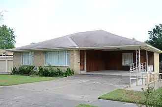The Daisy Bates House is set in a mid-20th-century residential area south of downtown Little Rock, Arkansas. It is a typical 1950s ranch house, one story in height, measuring about 39 feet (12 m) by 51 feet (16 m). It has a wood-frame structure, with its exterior finished in brick veneer. It is topped by a hip roof with broad eaves, which also shelters a carport on the north and west side of the house. The foundation and the carport deck are poured concrete.[3]