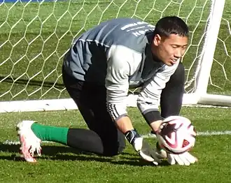 Daiya Maekawa (前川 黛也, Maekawa Daiya; born September 8, 1994) is a Japanese professional footballer who plays as a goalkeeper for J1 League club Vissel Kobe and the Japan national team.[2] His father is the former Japan national team goalkeeper Kazuya Maekawa.[3]
