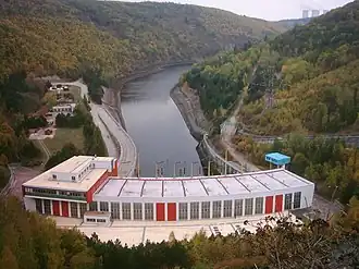 Dalešice Hydro Power Plant (Czech: Přečerpávací vodní elektrárna Dalešice) is a power plant on the Jihlava River in the Czech Republic. It has four Francis turbines with a nominal capacity of 120 megawatts (160,000 hp) each[1] and a total capacity of 480 megawatts (640,000 hp). The old turbines before the 1999–2007 reconstruction had a capacity of 112.5 megawatts (150,900 hp) each. The plant includes the lower Dalešice-Mohelno Reservoir of the Dalešice-Mohelno pump-dam complex.[2]