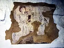 Muskham attributes the first part of the foundation legend to Matilda de Salicosa Mara of Lindsey, a local landowner whom he regarded as foundress of the community at Dale.[6] Muskham's chronicle places the origins of the abbey early in the previous century and credits the initiative to a local baker who experienced a vision of The Blessed Virgin Mary[7] telling him to go to Depedale.[8] The baker kept the religious experience secret but immediately set off eastward. Passing through the village of Stanley, he overheard a woman dispatching her daughter to Deepdale with a herd of calves. The former baker took this as a sign from God and asked the woman the way. He was told to follow the girl to Deepdale and so quickly arrived at his destination, described as locum palustrem valde terribilem longeque ab omni habitacione hominum separatum[9] — "a marshy place, extremely frightening, and far from human habitation." At the south east edge of the place he cut out a small rock house in the hillside and settled to an ascetic existence. A local landowner is named as Ralph Fitz Geremund, lord of a moiety of the manors of Ockbrook and Alvaston cum soc, i.e., holder of soke, the right and duty to constitute a court. He is portrayed by the chronicle as a Norman baron with interests on both sides of the Channel.[10] He was so impressed by the hermit and the wretchedness of his existence that he granted him a tithe of the proceeds of his own mill at Burgh (now thought to be at Alvaston, although earlier at Borrowash).[11] The remainder of the hermit's story is attributed to one Humfrid, a former canon. The hermit suffered spiritual torment in his later years, said by the chronicler to be the assaults of antiquus autem generis humani inimicus milleartifex[12] – "the ancient enemy of human kind, master of a thousand tricks," that is, Satan. To gain relief from these assaults, and from the lack of water at his hermitage, he searched for a new home.[13] By a spring in the little valley below he built a hut for himself and an oratory, dedicated to God and to the Blessed Mary, who seems to have been central to his spiritual life. There he lived in God's service until his death, which is described by the chronicler in almost Manichaean terms as release from the ergastulum, prison, of the body.[14]