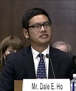 Dale Edwin Ho (born 1977)[2] is an American lawyer serving as a United States district judge of the United States District Court for the Southern District of New York. Prior to becoming a judge, he was the director of the American Civil Liberties Union's voting rights project.