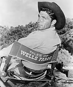 Tales of Wells Fargo, his best-remembered series, aired on NBC from 1957 to 1962. Weekly B & W episodes were 30 minutes in length from 1957-1961. The program expanded to an hour and switched to color for its final season in 1961-1962. The show originally was produced by Nat Holt whom Robertson felt he owed his career to for giving him his first leading roles.[9] Robertson used his own horse, Jubilee, throughout the run of the series.[10][11]