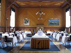 During the German occupation of Norway in World War II, Dalen Hotel was used as a resort for German officers. Most of the building's interior was stripped out and sold for parts, and the building fell into disrepair due to lack of proper maintenance. After the war, the building was bought by singer and evangelist Aage Samuelsen with the intent of restoring the hotel to its former glory. Though Samuelsen failed to raise the necessary funds to renovate the building, he gave the hotel significant press exposure, and towards the end of the 1980s restoration efforts began in earnest. The hotel was reopened once the remodelling finished in 1992. In 2000, the hotel was honored with the Europa Nostra award for outstanding conservation.[5] [7]