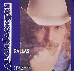 "Dallas" is a song written by American country music artists Alan Jackson and Keith Stegall, and recorded by Jackson. It was released in December 1991 as the third single from Jackson's second album, Don't Rock the Jukebox. The song peaked at number 1 on the Billboard Hot Country Singles & Tracks chart, Jackson's fourth consecutive single to top the chart, as well as number 1 on the Canadian RPM Country Tracks chart, Jackson's fourth single to top that chart also.