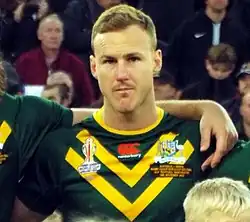 Daly Cherry-Evans (born 20 February 1989) is an Australian professional rugby league footballer who captains and plays as a halfback for the Manly Warringah Sea Eagles in the National Rugby League. Regarded as one of the best halfbacks of the NRL era, he is known for his game reading tactics, fitness, longevity and ability to kick match-winning field goals under pressure on either foot.[2]