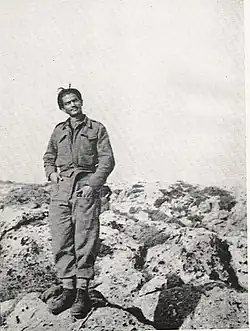He chose an ambush site by a bridge in the Damastos location, one kilometer west of the village of Damasta and mined it with Hawkins grenades, preparing for the German reaction. After destroying various passing vehicles, among which was a lorry carrying military mail to Chania, the German force on its way to target Anogeia finally appeared. It consisted of a truck of infantrymen backed up by an armoured car.[1] Moss and his group attacked the German troops. Moss crawled up to the back of the armoured car and dropped a grenade into the hatch. In total 35 Germans and 10 Italians were killed, as well as one Russian partisan, and 12 Axis prisoners taken in the clash that followed.[4] Cretan partisan Manolis Spithouris (Ntampakomanolis) was seriously wounded in the abdomen.[2][7] Nevertheless, he was rescued in "extremely brave action" by Kostas Kephaloyannis (Kountokostas) and treated by fellow andartes, as well as Moss and Georgios Tyrakis, managing to survive.[8] Moss argued on his return to Cairo that Kephaloyannis should be decorated for his action.