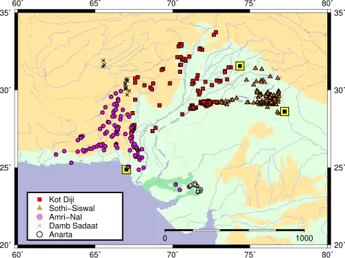- ^ Location map of Damb Sadaat in the context of early Harappan Civilization sites. In Vasant Shivram Shinde 2018, Archaeological and anthropological studies on the Harappan cemetery of Rakhigarhi, India.