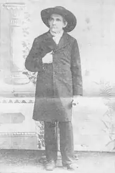 Chatterton was born in Clerkenwell in central London. His father was a practitioner of Japanning, a form of lacquerwork, but an accident left him unable to continue his craft.[1] Chatterton suffered poor health when young and his attempts to establish himself as a bootmaker were unsuccessful. In the 1850s, at the time of the Crimean War he enlisted in the army, but appears to have spent much of his military service in a hospital in Malta. He subsequently earned what seems to have been a precarious living as a bill poster and a peddler of left-wing literature.[2] Chatterton married twice – his first wife, Emma, died in St Pancras workhouse at the age of 32. He lived in slum housing in the Cromer Street area of King's Cross and later around Drury Lane in Covent Garden. He was buried in an unmarked grave in St Pancras cemetery in Finchley. Of his children, only one, Alfred, outlived him.