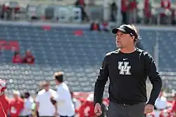 Holgorsen resigned from his West Virginia job on January 1, 2019, to accept the head-coaching position at Houston, where he previously was the offensive coordinator under head coach Kevin Sumlin.[18] In 2022, he received a contract extension to go until 2027. Holgorsen was fired on November 26, 2023, following a losing season in the team’s first year as part of the Big 12 Conference.[19] Houston agreed to pay $14.8 million in buyout money, but his deal includes a mitigation clause which may reduce the amount if he takes another job.[20]