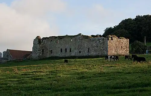 The castle was first recorded in 1242, but it was in ruins by 1336, according to local tradition due to a fire and the reuse of its stone in constructing St Hilda's Church, Danby. The current building dates from the late 14th century, with some alterations to the south wing having been made in the mid and late 16th century. During this period, it may have been the home of Catherine Parr. Much of the building later fell into ruin, but part of the southern range was converted into a farmhouse, with a large cellar underneath and a courtroom on the first floor, formerly the great chamber.[1][2]