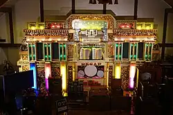 With rhythm being an important part of any dance, dance organs generally have many more percussion instruments than other types of mechanical organs. For visual effect in addition to the facade itself there are often complex lighting effects. Some instruments have further visual interest provided by displaying automatically operated accordions, visible percussion and occasionally dummy saxophones rigged so that they appear to be playing, but actually the sax sound is made by a rank of reed pipes within the pipework case.