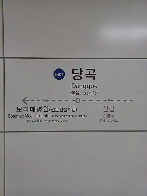 Danggok Station (Korean: 당곡역) is a station on the Sillim Line. It is located in Bongcheon-dong, Gwanak District, Seoul.