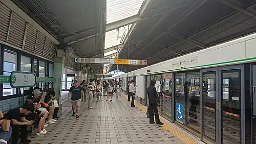 Dangsan Station (Korean: 당산역) is an elevated station on the Seoul Subway Line 2 and is an underground station on the Seoul Subway Line 9. The station is located on the south bank of the Han River in Yeongdeungpo District. Because the station is elevated, trains exiting to or entering from the north make use of the Dangsan Railway Bridge. As of April 2009, the platform has been outfitted with platform screen doors. Dangsan station is currently a transfer point between Line 2 and Seoul Subway Line 9. Several Korean TV series were shot in nearby locations, like Boys Over Flowers, Iris or My Girlfriend is a Gumiho.[3]