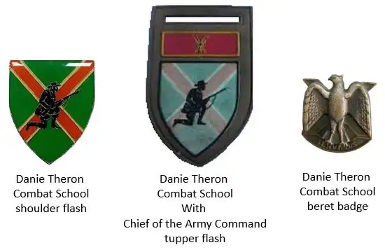 Danie Theron Combat School was established near Kimberley around 1967, aimed at primary infantry training for the Commando system. The school was initially called the Commando Combat School, but by 1968 was renamed in honour of Danie Theron , a renowned Boer war soldier.